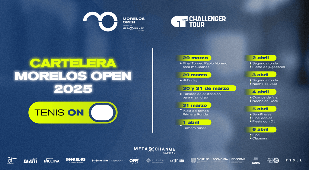 Podrás ver y estar enterado acerca de todo lo que suceda en el torneo de tenis Morelos Open 2026.